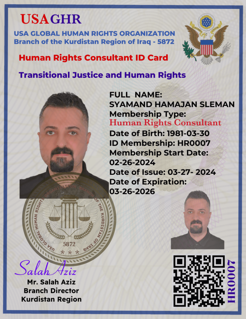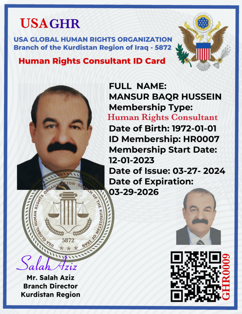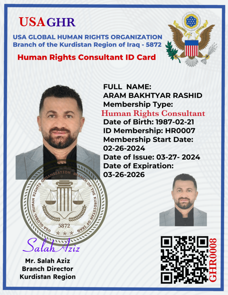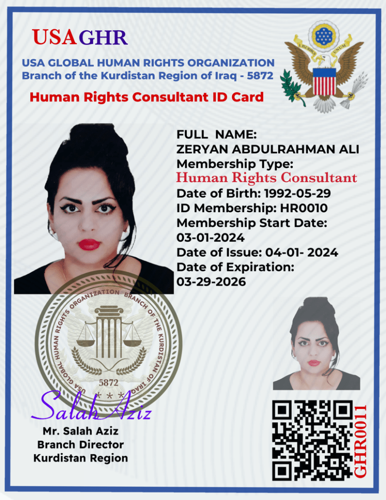 USA Global Human Rights Organization Defenders provides Human Rights Defender ID cards to HRDs with whom it has worked.
